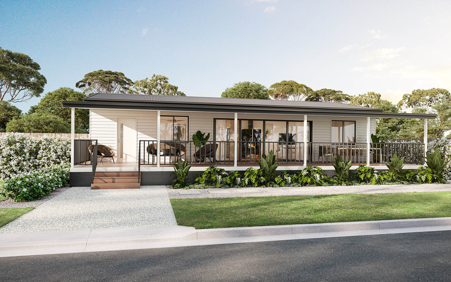 Spacious 2-Bedroom Retreat. The Clovelly delivers modern open-plan living, a functional kitchen, and two inviting bedrooms, making it ideal for lifestyle villages, compact family living or holiday retreats.