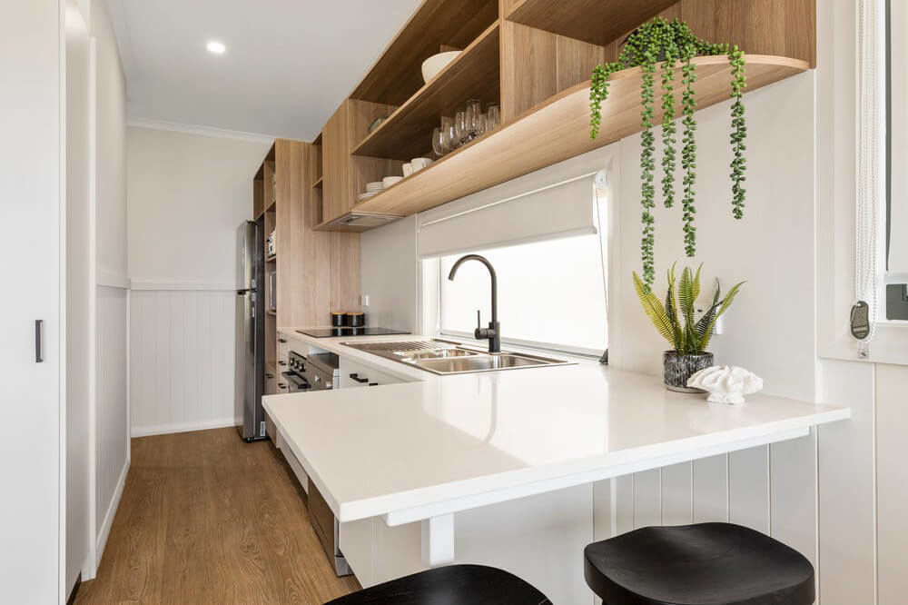 Your Modern 2-Bedroom Escape. The Getaway delivers a practical modular home with an open plan layout, modern kitchen, and relaxed living space. Ideal for lifestyle villages, holiday stays, or backyard additions.